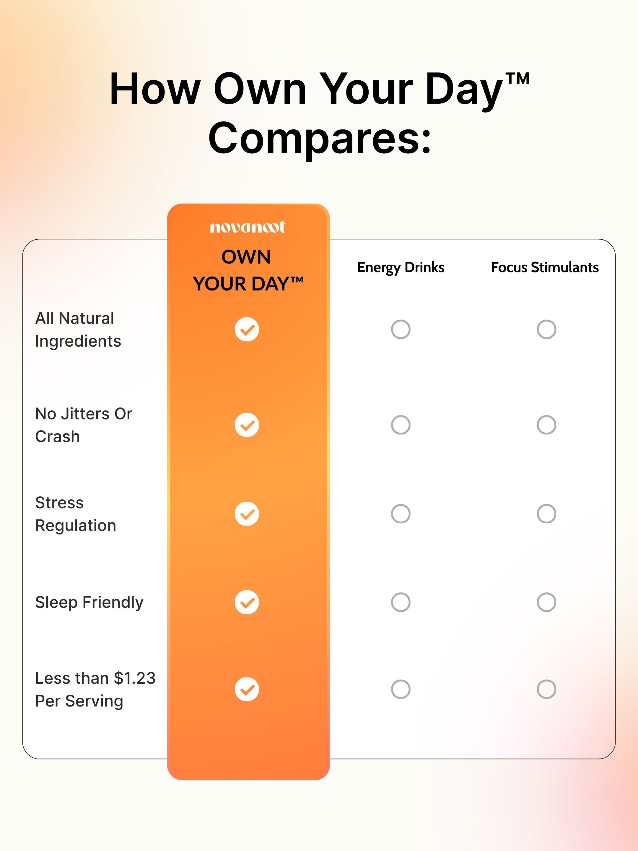 You feel calmer and clearer, with energy lasting up to 6 hours longer into the evening.